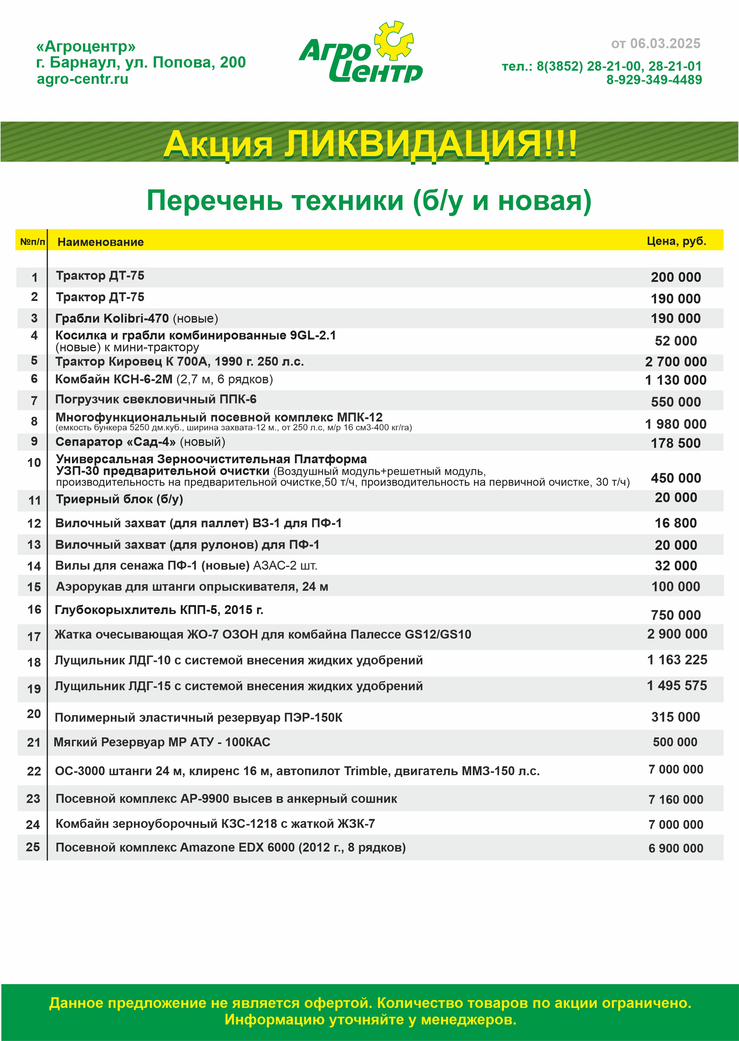 (документы в порядке, полностью обслужен и готов к уборке урожая)
