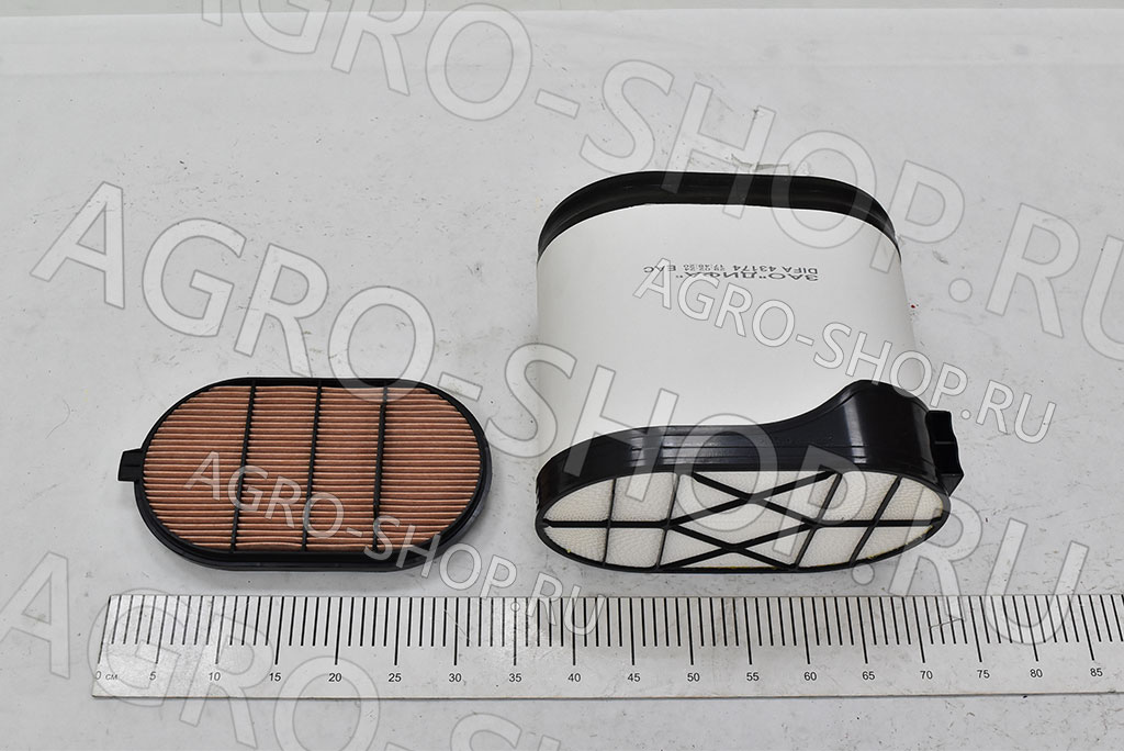Основная модель 43174 имеет размеры: высота 341 мм, ширина 214 мм, длина 286 мм. Версия 43174-01 компактнее: высота 328 мм, ширина 187 мм, длина 40 мм, вес около 0,45 кг. Это внутренний воздушный фильтр, совместимый с тракторами К-744, К-424, К-525 и двигателями ТМЗ, Cummins.?