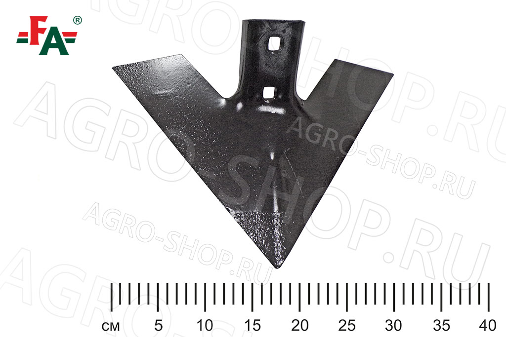 Лапа изготовлена из стали 65Г, имеющей повышенную прочность, вязкость и сопротивляемость к изнашиванию. Готовая культиваторная лапа дополнительно проходит ТВЧ-закалку, упрочнение стали током высокой частоты.